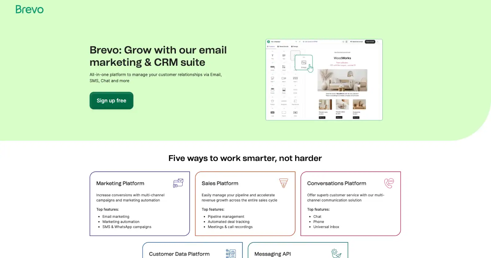 The free plan lets you send up to 300 emails per day, and paid plans start at just a few dollars per month. Brevo also supports SMS campaigns, transactional emails, and simple automations.
